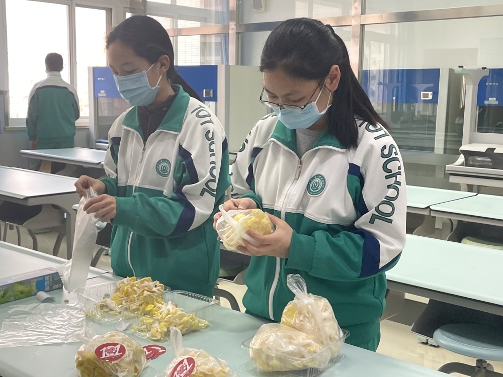 通过查阅资料,学生们确定了“蘑菇在校园中种植获得财富的成本和收益”的研究课题,自主策划了一家集蘑菇生产、加工、销售于一体的“公司”,希望在真实情境中,用劳动创造价值。8位小“菇东”按照各自特长,创建了生产部、开发部、宣传部、销售部四大部门,统筹各项成本,为生产“车间”选址,发展部门成员……小小的“公司”初具规模。