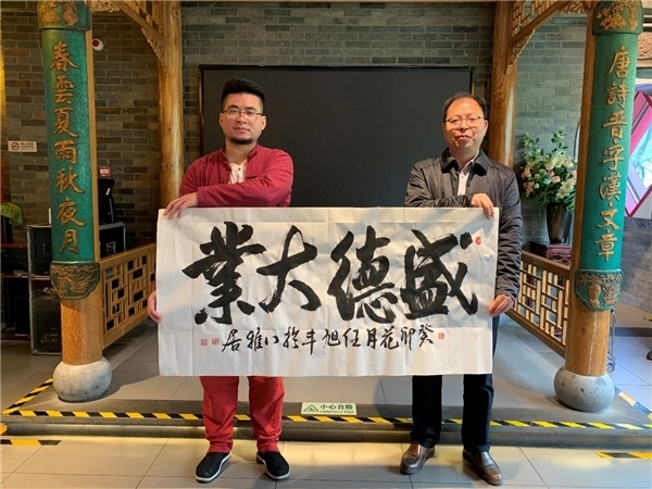 郭外先生、任旭丰先生分别向八雅先生赠送了书法作品:心好福来、盛德大业;关洪刚先生赠送了山东省菏泽市人大常委会副主任丁志刚先生书法作品:厚德载物;殷大卫先生向八雅先生赠送了中国著名诗人李瑛先生63年版的作品集《红柳集》,黄莽先生向八雅先生赠送了胡浚源作品集《胡浚源诗集》、《雾海随笔》。