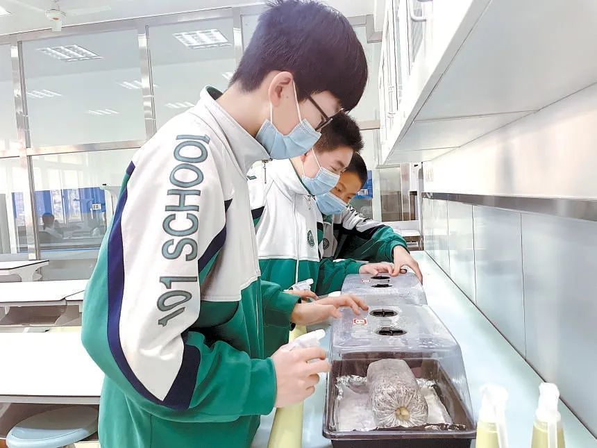 “卖蘑菇了,咱们蘑菇公司自己种植的,现在还可以线上支付。”在北京一零一中石油分校一楼大厅,一群初中生在向来往的行人推销自种的蘑菇。这群初中生还有另外一个身份——“超级蘑菇公司”的股东。 “超级蘑菇公司”是北京一零一中石油分校初二3班劳动教育中的一..