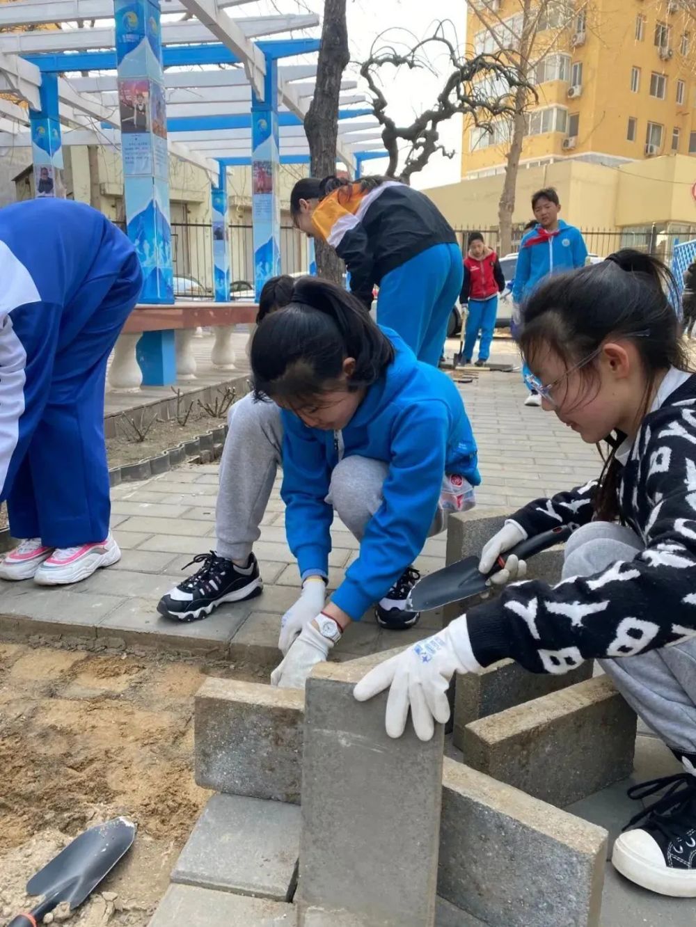 学生们对树木根部附近地面进行改造,让树根得以呼吸