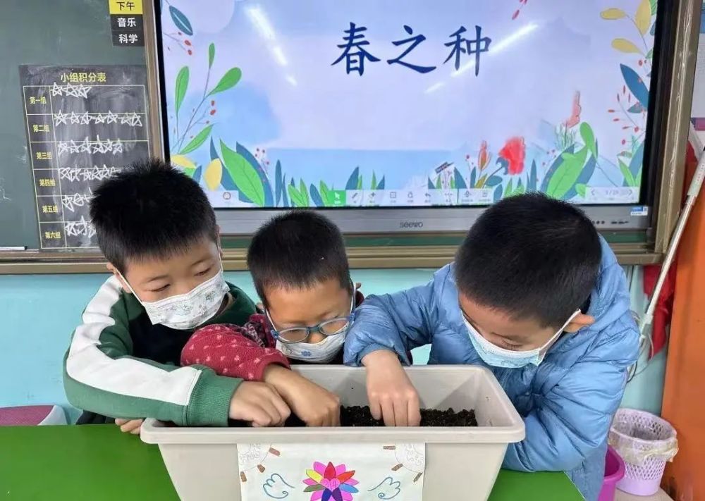 新学期开始后,北京市海淀区五一小学以“春天”为主题开展了系列低年级综合实践活动课程,从“春之寻”“春之种”“春之绘”“春之动”“春之声”“春之赞”几个板块带领孩子们开展学习实践活动。在“春之种”板块,需要孩子自己种植植物,孩子们收到小种子后,就迫不及待地种起来,校园里、家庭中都能看到同学们忙碌的身影。