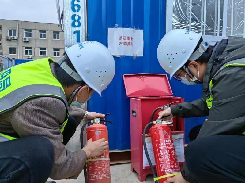 图二:中铁四局北京地铁12号线机电设备三标消防检查小组检查所属网格区内消防灭火器,成思维摄本次消防大检查以管理网格为单位,检查前北京分公司安全总监高旭涛对本次检查重点、检查区域范围进行了详细部署,要求坚决不留一处死角和盲区,12号线机电设备三标、12号线FAS一标及华为天津区域总部三个项目的12名网格管理员针对易存隐患区域和管理盲点,对所属网格区内消防设施设备数量及功能、施工现场建筑垃圾清理、特种设备管理及使用等进行了仔细排查。并对应急疏散通道是否通畅、值班人员是否在岗及日常巡视制度落实情况等做了全面检查。北京地铁1号线福寿岭及八通线再生能源项目在下班时间,针对宿舍用电、消防设施设备是否配备齐全并定期维护等方面工作进行了突击检查,在检查现场网格管理员针对违规现象对违规人进行了安全再教育。