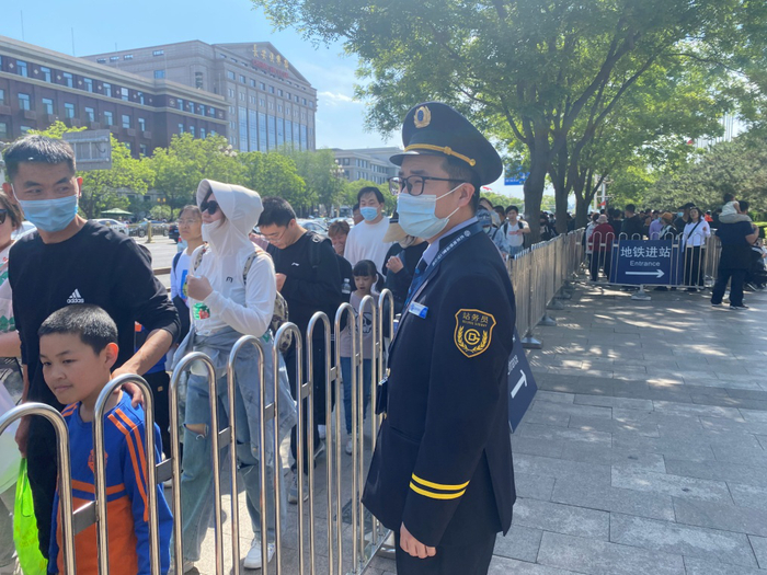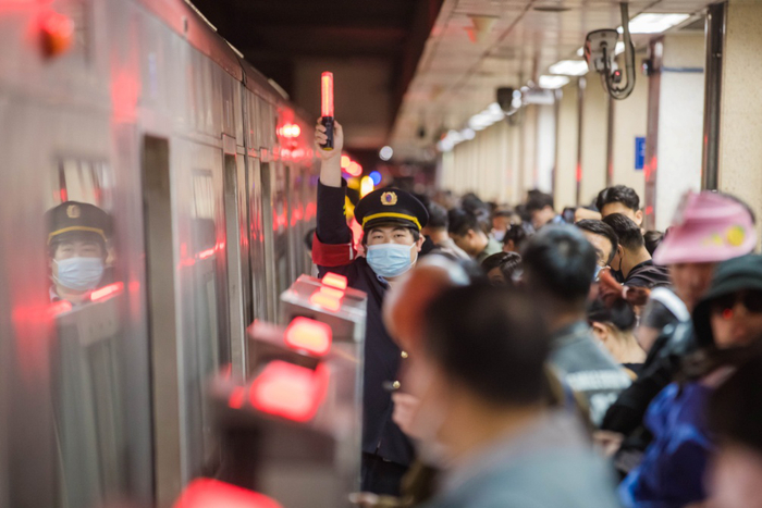 “此次保障,是8号线王府井站开通、‘乙类乙管’后的首个重点节日运输。我们充分预判客流情况,利用节前三天对4个出入口地面、2个市政通道、5个安检点位进行乘客流线设计,累计增设了800余米的导流设施应对大客流冲击。”王府井站区党支部书记刘辉连续坚守岗位数日。保障期间,站区及时与公安部门沟通站外乘客走行路径,预判当日客流集中到达时间,快速采取导流措施,引导乘客有序乘车。
