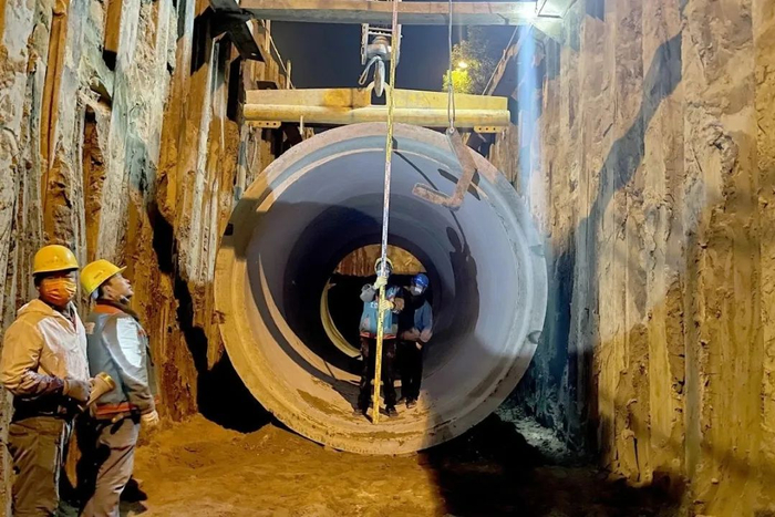 平均海拔比北京低约20米,城市内地下水资源异常丰富,这让燕郊常遇到不同程度的内涝问题。近日伴随着外径4米多的超大排水管线“入列服役”,燕郊在建的最大全地下雨水调蓄泵站——102国道尹家沟雨水泵站地下主体结构封顶,未来其每小时可排水近35个标准游泳池,助力化解困扰燕郊多年的水患难题。