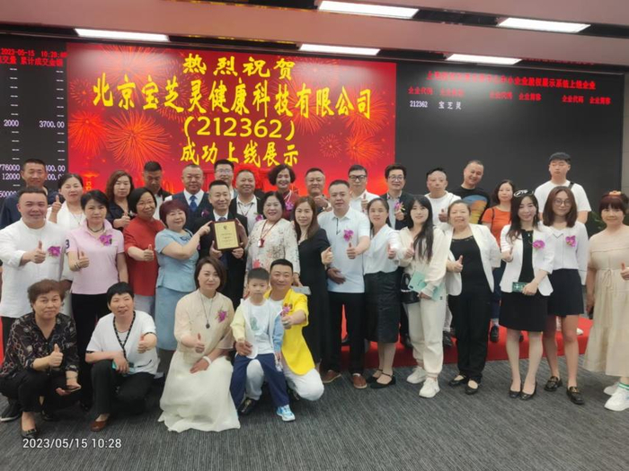 现场图(挂牌仪式开始)2023年5月15日上午10:18分,北京宝芝灵健康科技有限公司在上海股权交易中心成功挂牌,并举行了挂牌敲锣仪式。